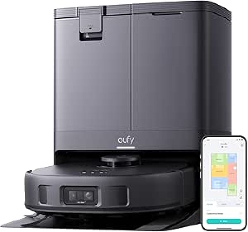 Eufy X10 Pro Omni Robot Vacuum and Mop with 8,000 Pa Suction, Dual Mops with 12 mm Auto-Lift and Carpet Detection, AI Obstacle Avoidance, Auto Mop Washing, Self-Drying, Self-Emptying, Self-Refilling 20 W T2351 black