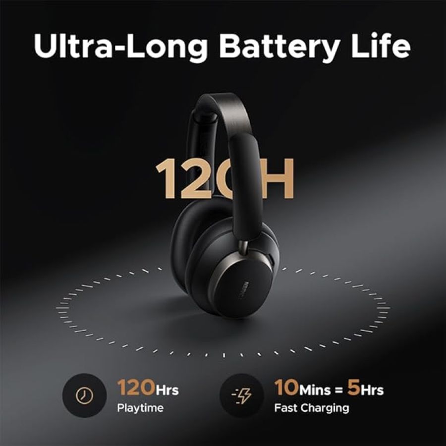 HiTune Max6 Noise Cancelling Bluetooth Headphones, Hi-Res LDAC Wireless Audio, 120H Playtime, Over-Ear Wireless Headphones with Deep Bass for Travel black